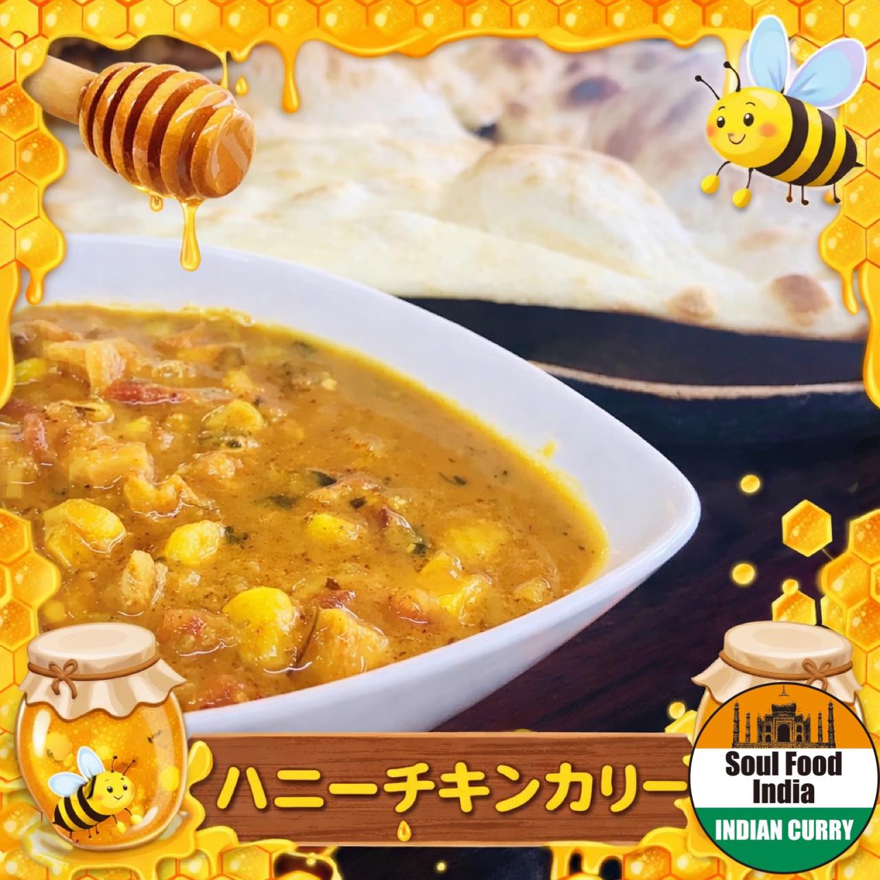 《ハニー・チキン・カリー》甘辛 数量限定!今日の日替りカリーは 蜂蜜を使った甘いルーとコーンの チキン・カリー。 タンドールで焼いた鶏もも肉は 小さめにカットして食べやすく、 ルーは甘さの後からピリリと刺激的な ファンも多いカリーです🍯🐝⋆︎*゚∗🌽 売り切れ御免🙏 是非、お早めに💨 皆様のご来店を 心よりお待ちしております🙇♀️ ソウルフードインディア 東京都文京区本郷1-21-7 0358446966